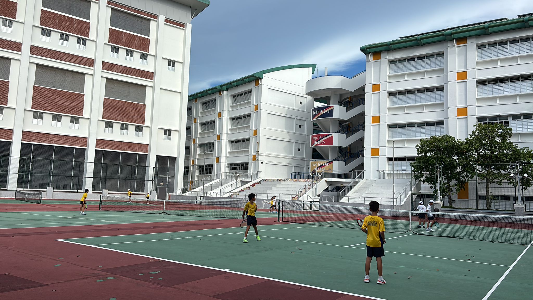 The Tennis CCA takes part in the National School Games (NSG) organised by the Singapore Primary Schools Sports Council (SPSSC) and the Singapore Schools Sports Council (SSSC) in both the Senior and Junior Divisions.